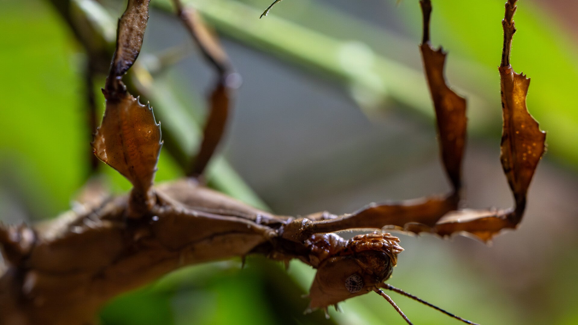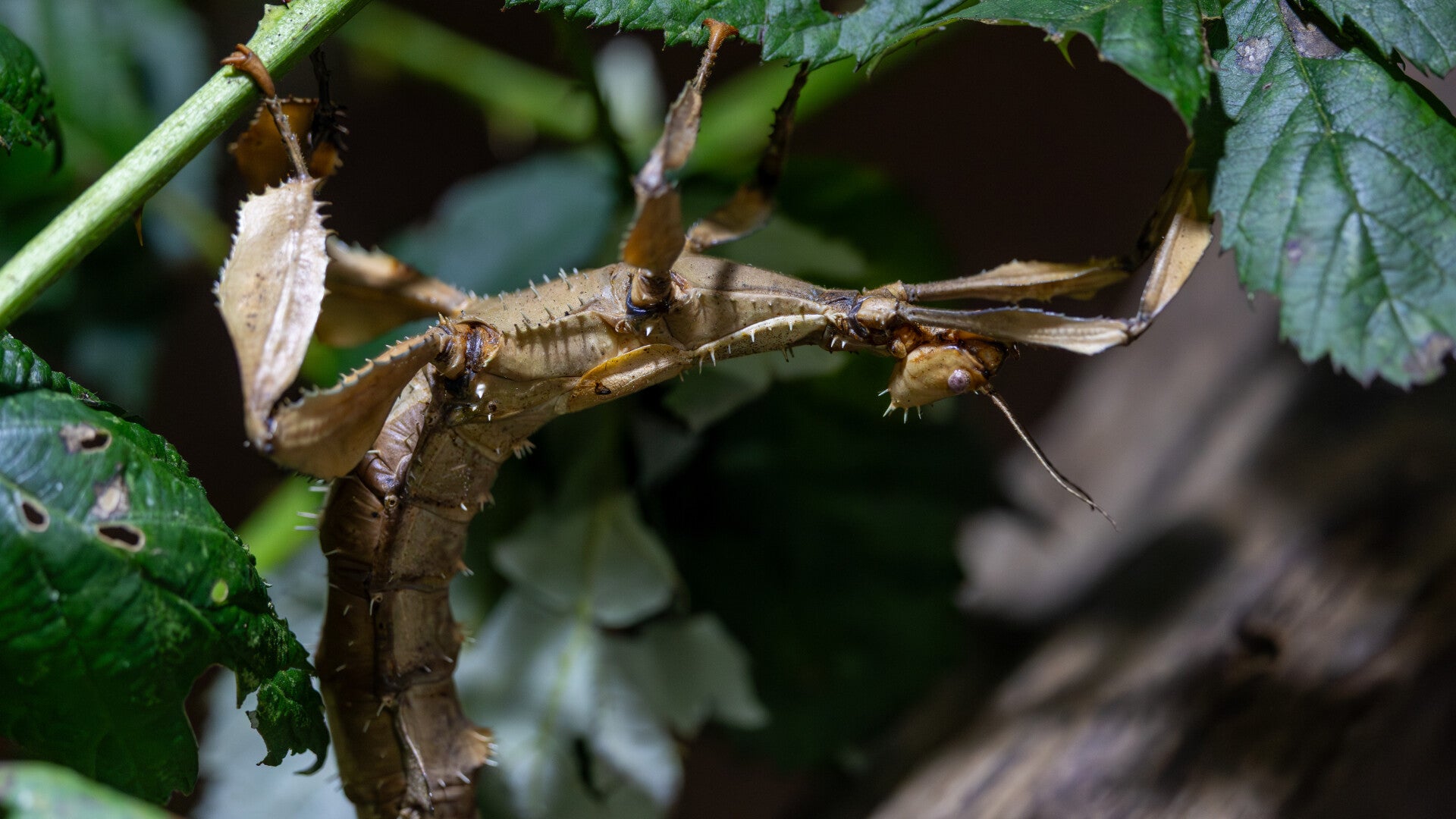 - Meesterlijke vermomming: Ze lijken sprekend op een tak met bladeren of een cactus door de stekeltjes en uitstulpingen op hun poten en lichaam.