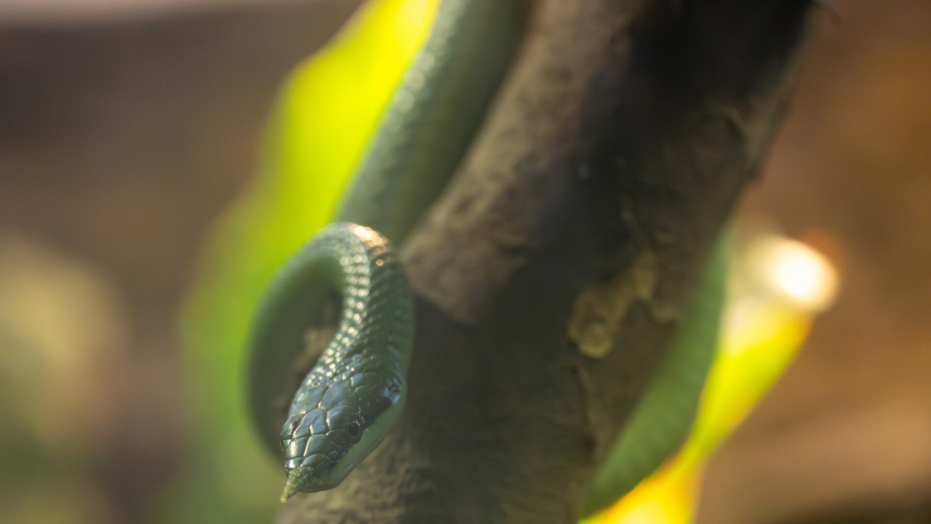 De neushoornslang (Gonyosoma boulengeri) is een niet-giftige rattenslang die bekend staat om zijn opvallende, hoornachtige uitsteeksel op de snuit en zijn verbluffende kleurverandering naarmate hij ouder wordt.