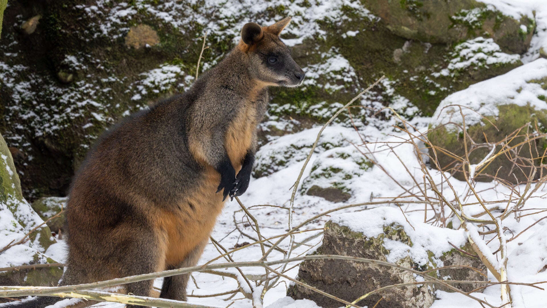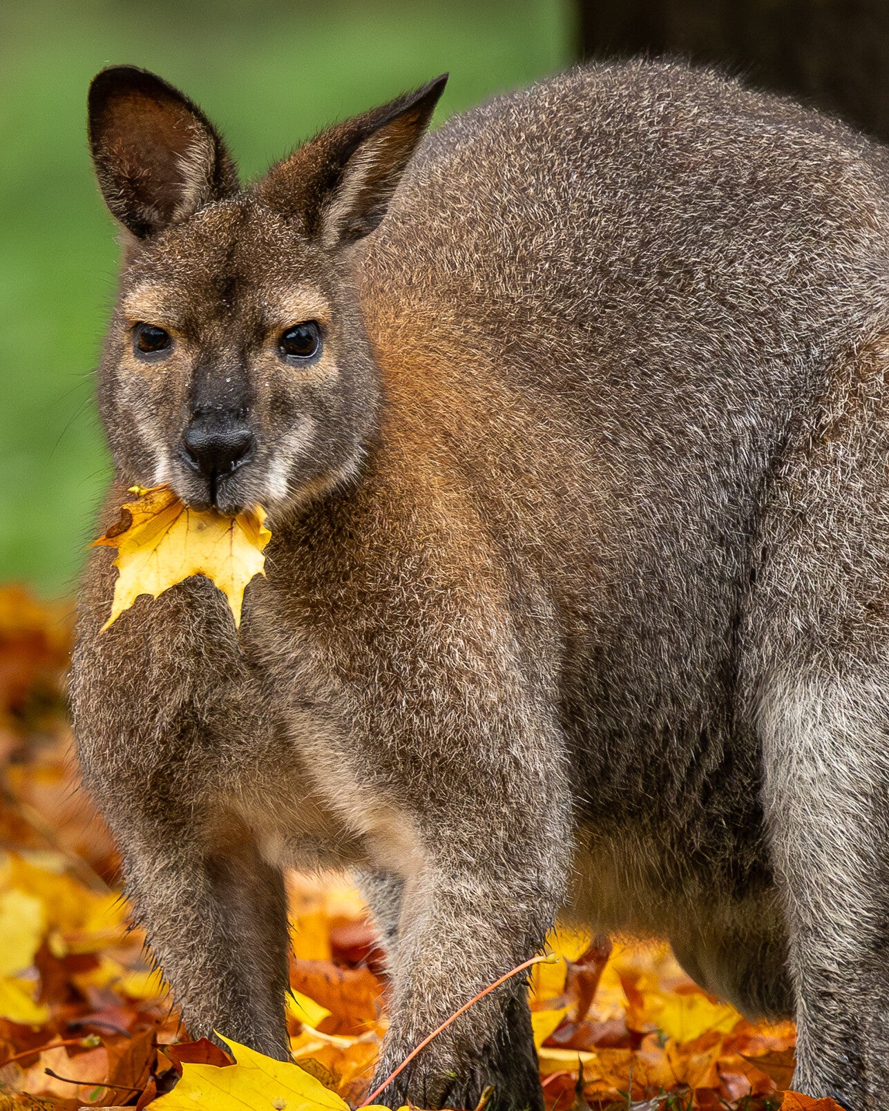 - Kleur: Ze hebben een bruinig-grijze vacht die op de rug donkerder is en op de borst geel- tot oranjebruin.