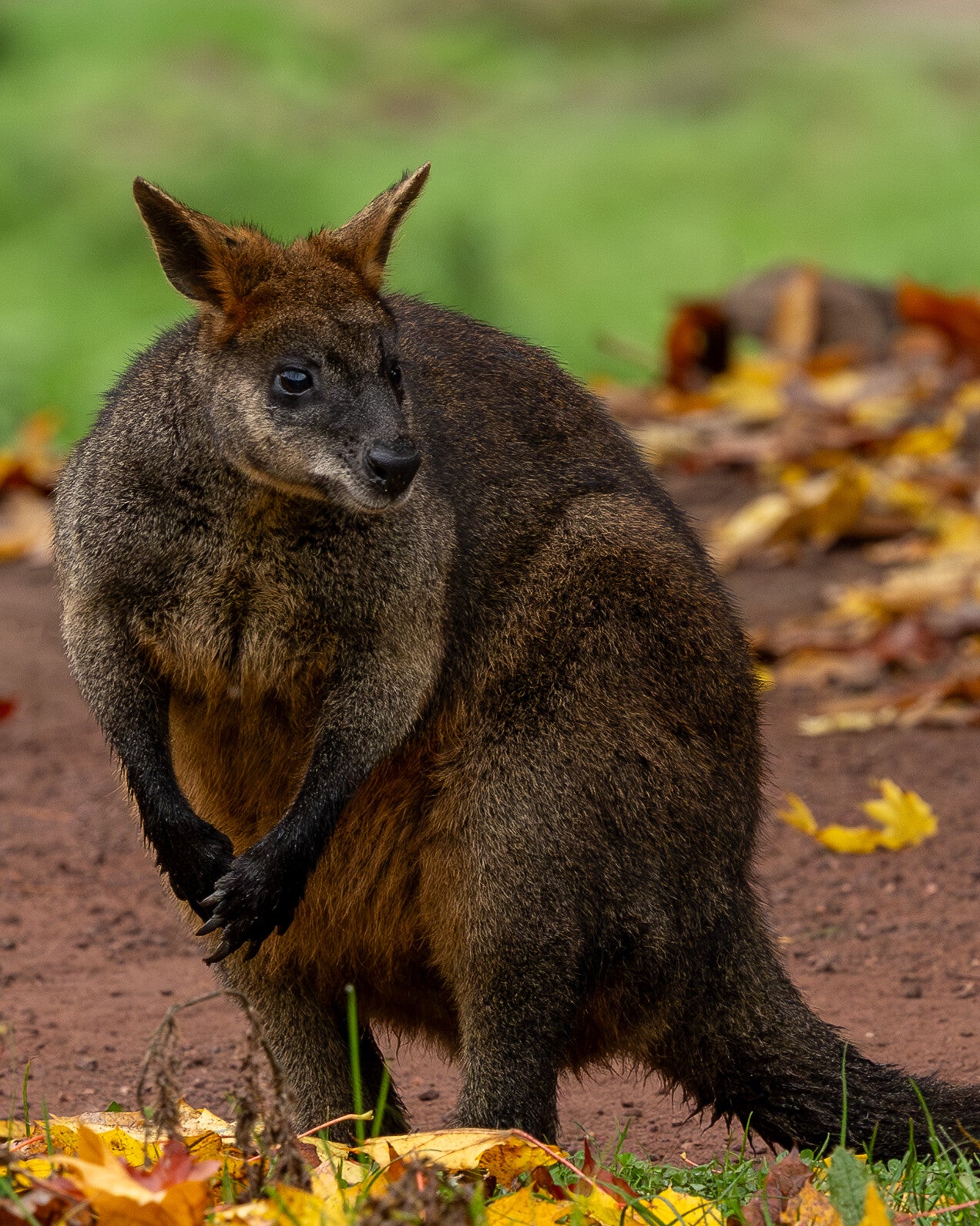 - Grootte: Het is een kleine kangoeroesoort met een kop-romp lengte van 66 tot 85 cm en een staart van 64 tot 86 cm.